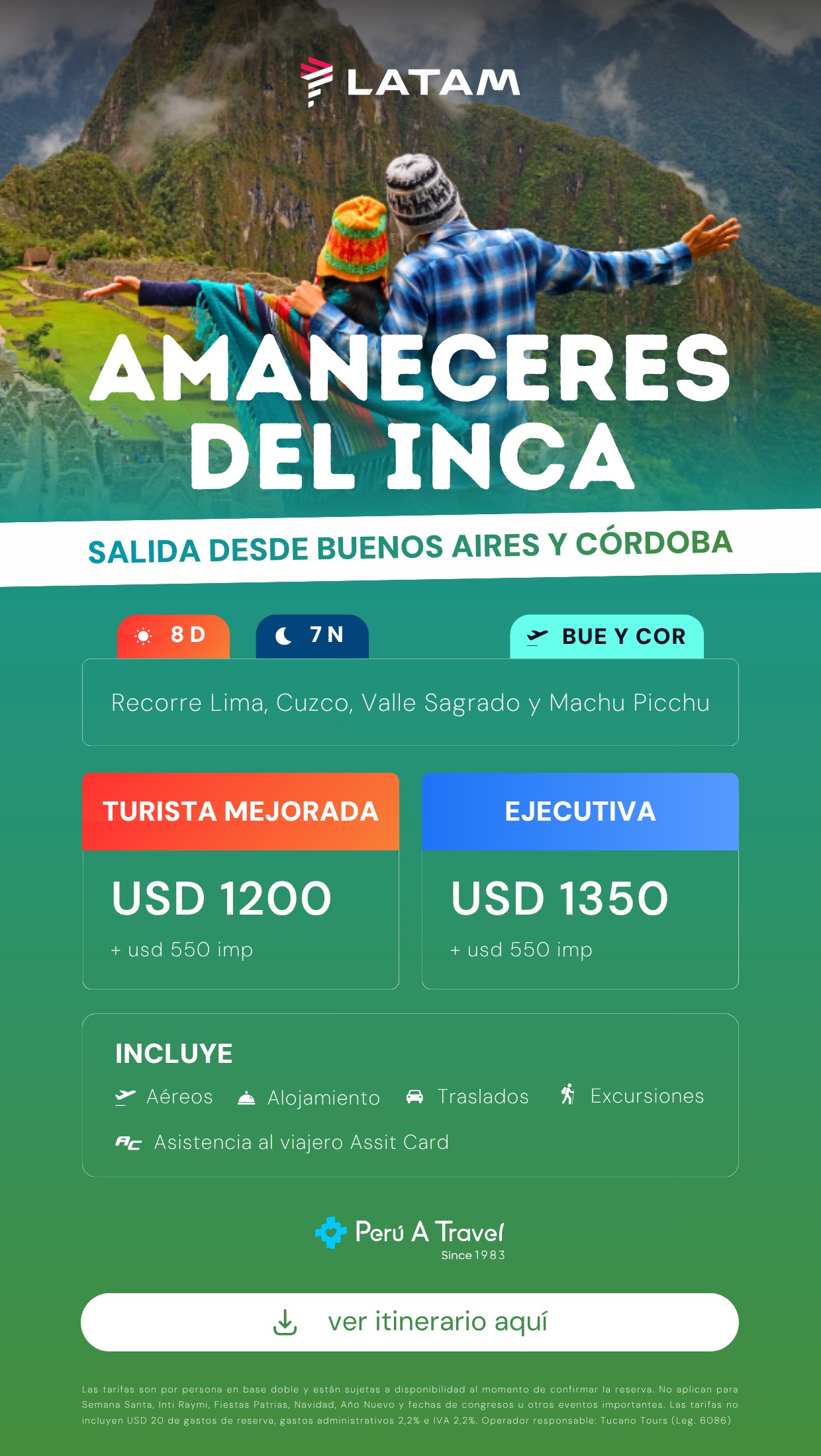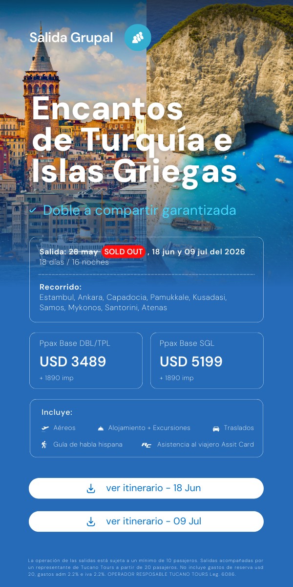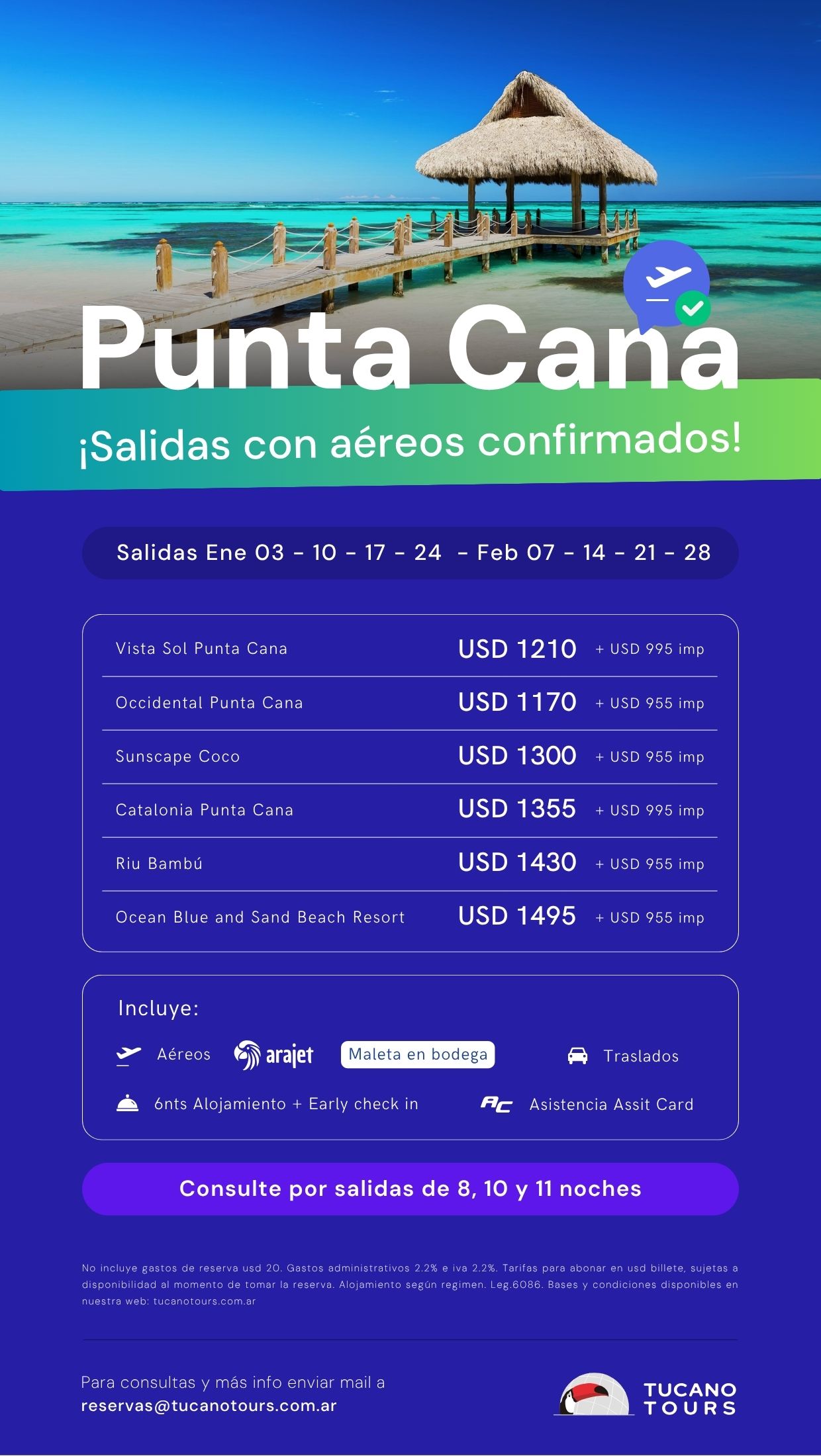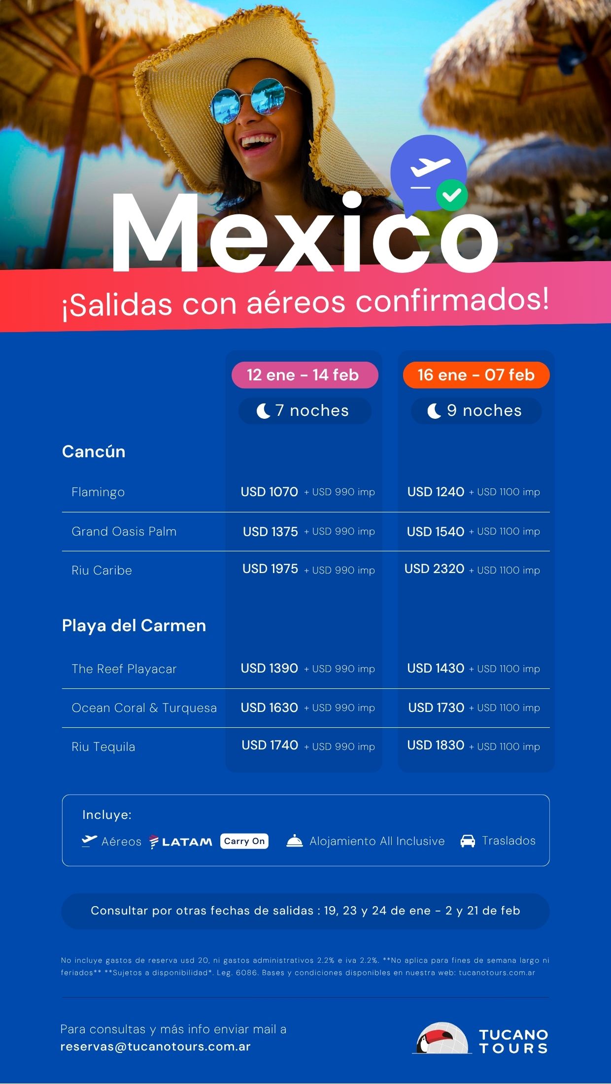 Salidas: Enero (03, 10, 17, 24) y Febrero (7, 14, 21, 28)