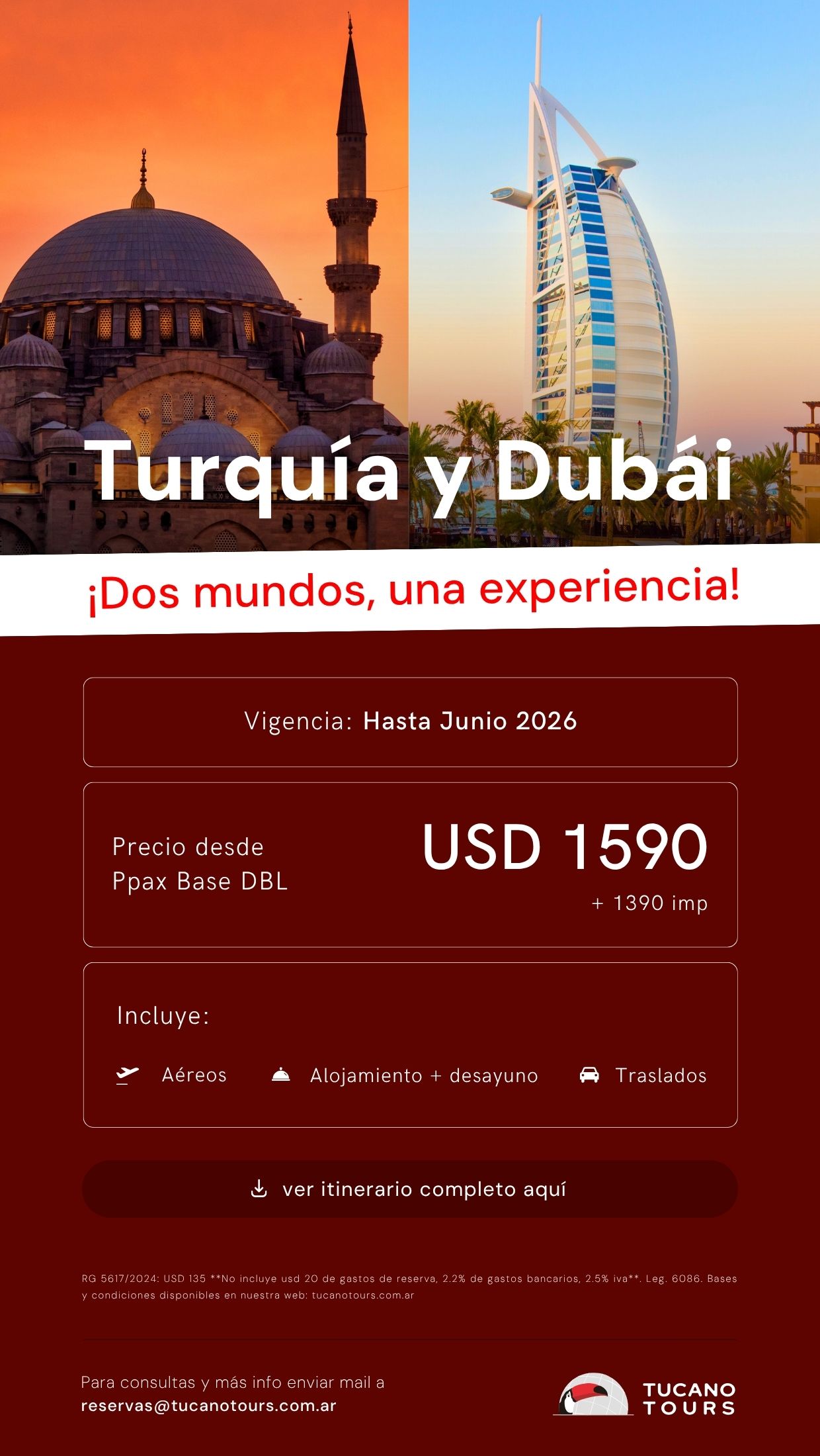 Incluye: Aéreos, Traslados y Asistencia al viajero.